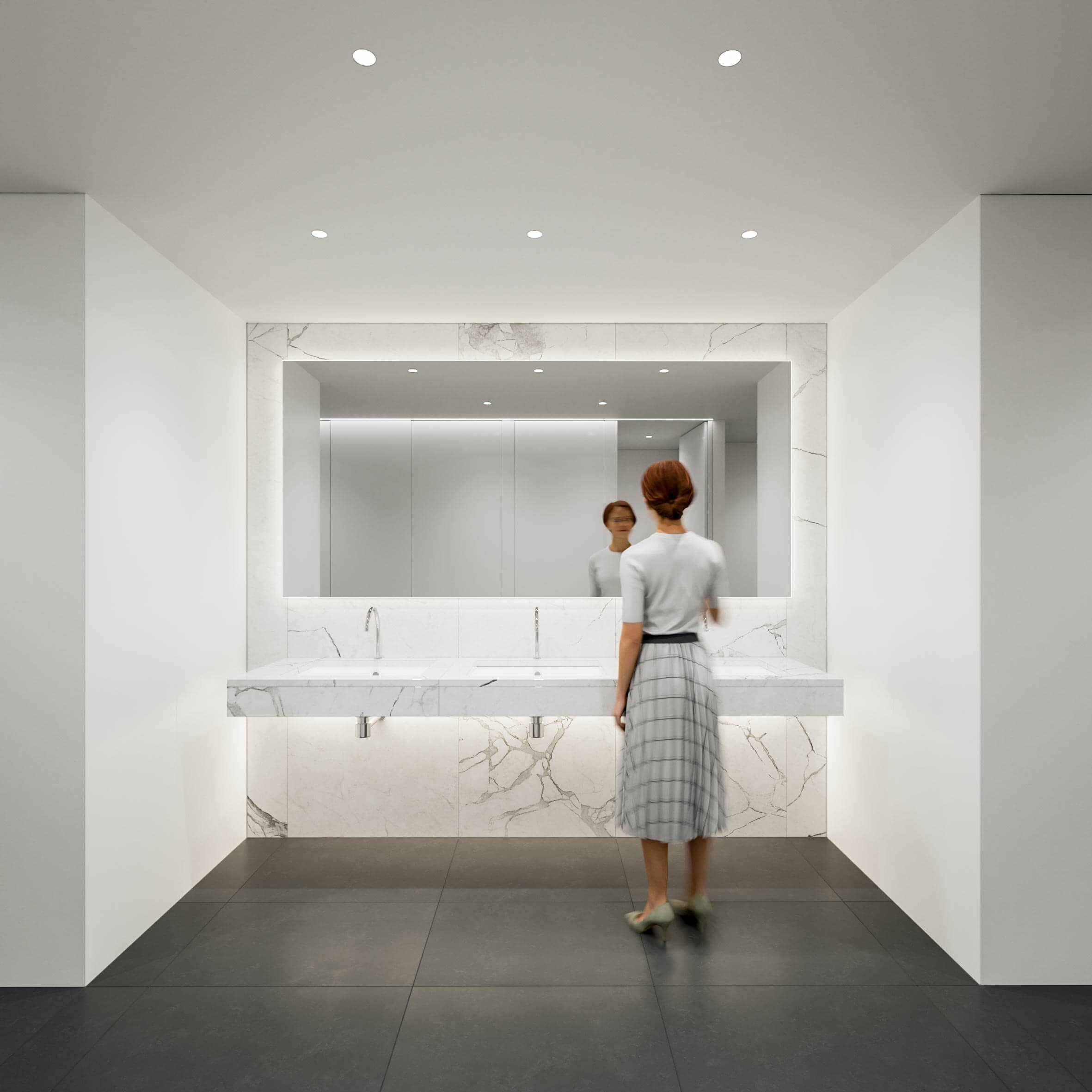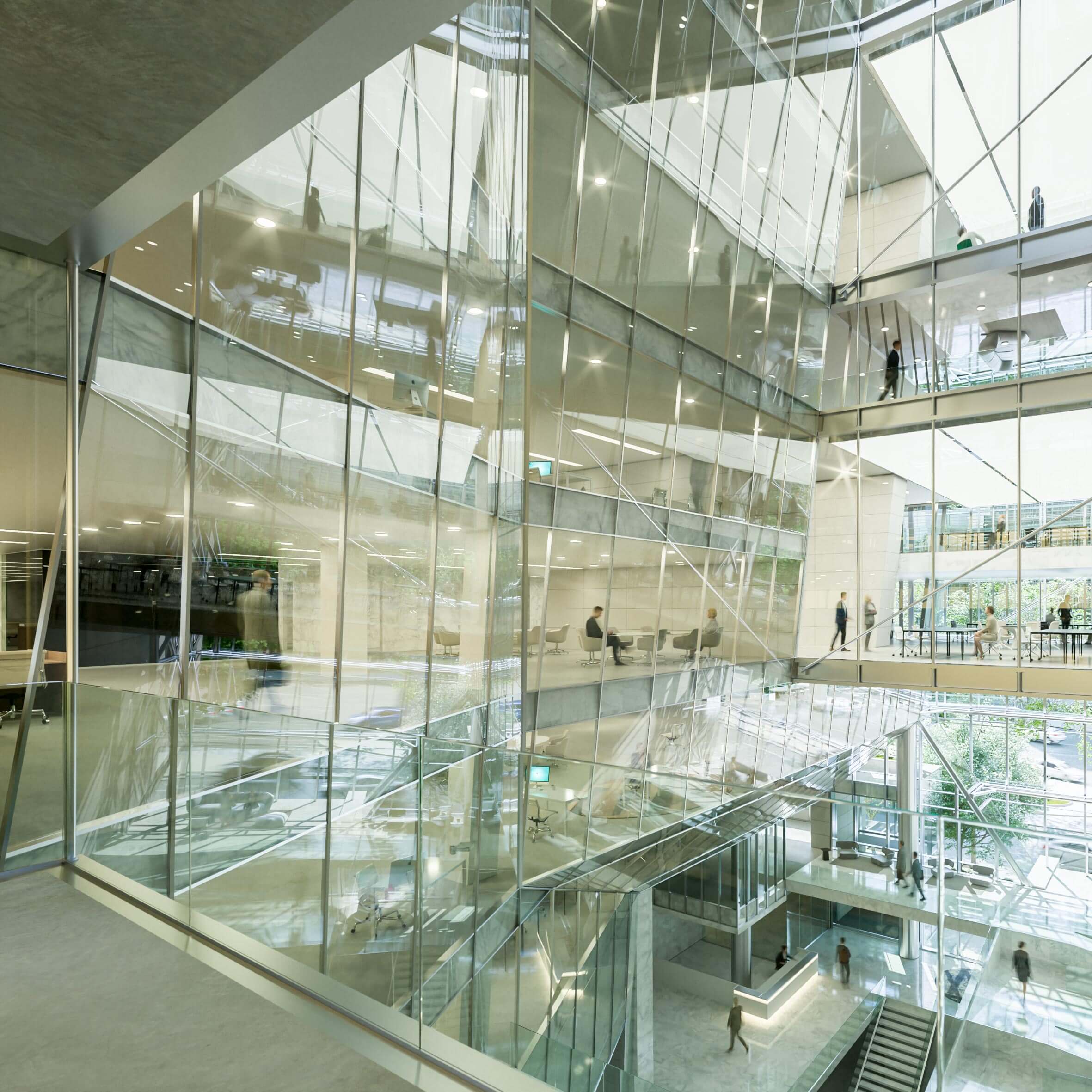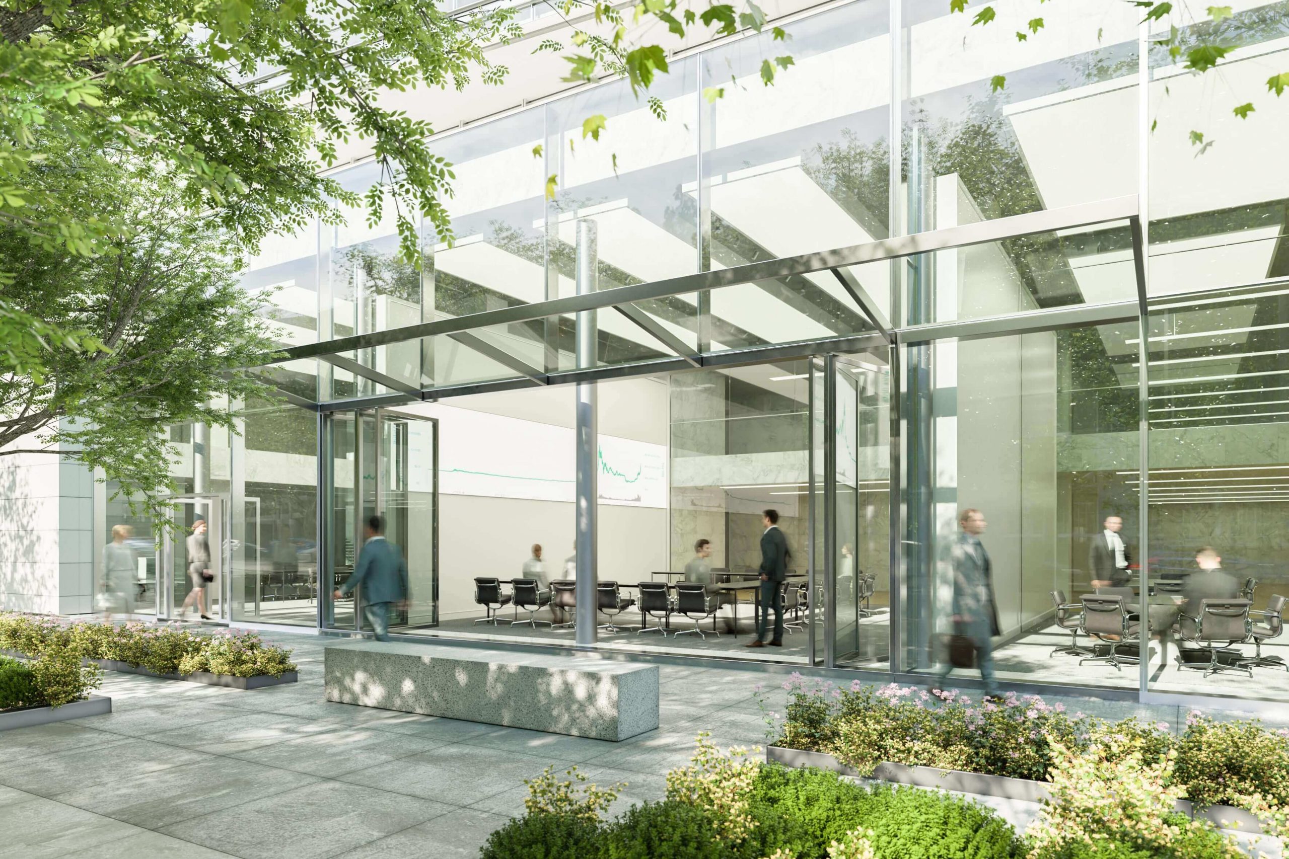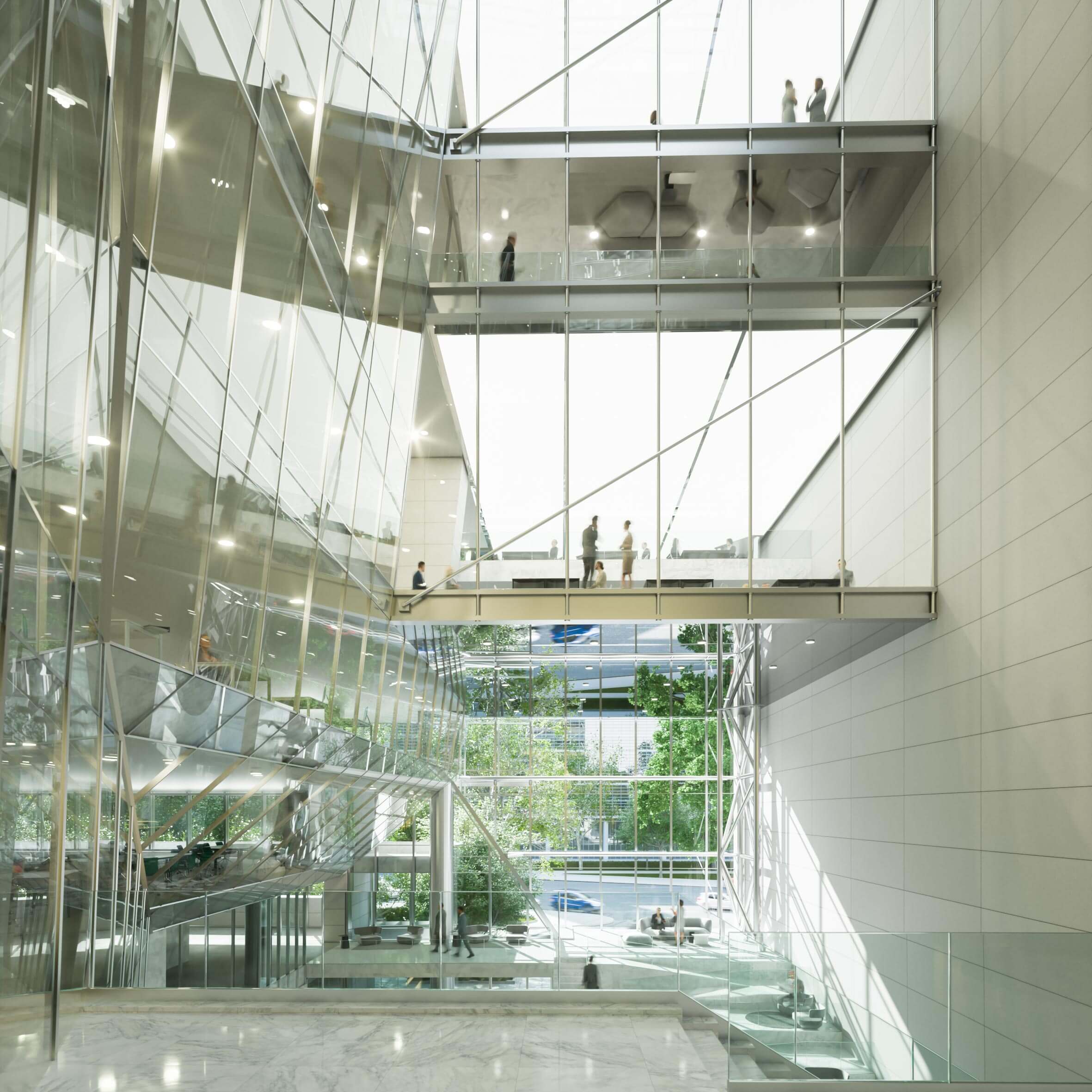 The light filled atrium, glass structure spanning 1875 Penn, and updated interior façade create physical and visible connections across floor plates